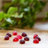 Ingredients: glucose syrup*, sugar*, gelling agent (pectins), acidity regulators (potassium tartrate, sodium tartrate), acid (citric acid), natural flavourings, fruit and plant concentrates* (carrot*, apple*, blackcurrant*, elderberry*), glazing agent (carnauba wax*).